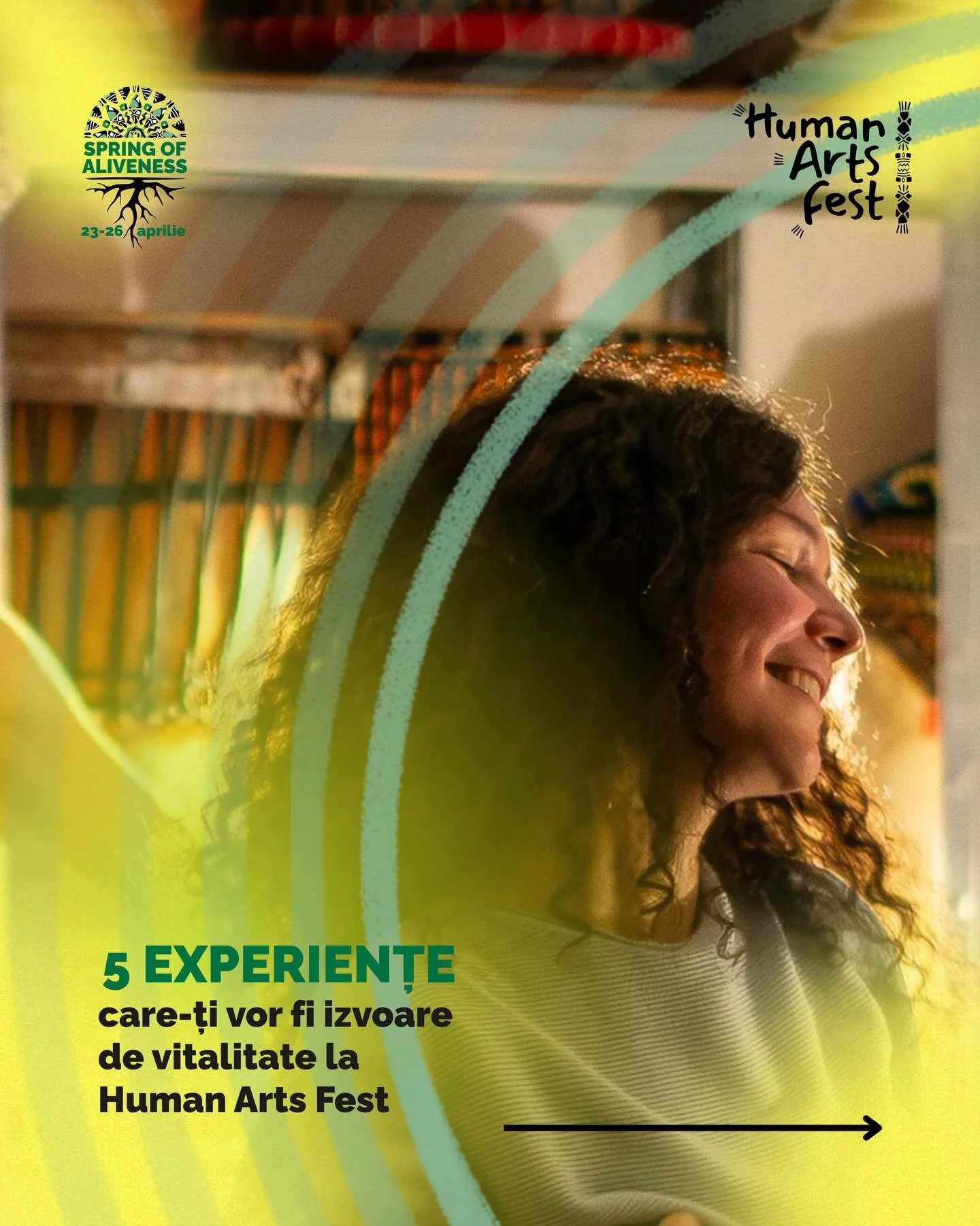 Ce înseamnă a fi om? Ce înseamnă starea de bine? Ce înseamnă artă și creativitate? Arta a fost dintotdeauna un izvor care au adus umanității răspunsuri, trăire, sens, direcție, oglindire, conexiune și împlinire. Te invităm să trăim împreună arta de a fi om, între 23 și 26 aprilie, la a cincea ediție Human Arts Fest!
